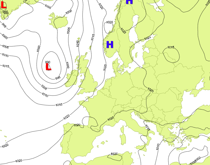Pressures over United Kingdom